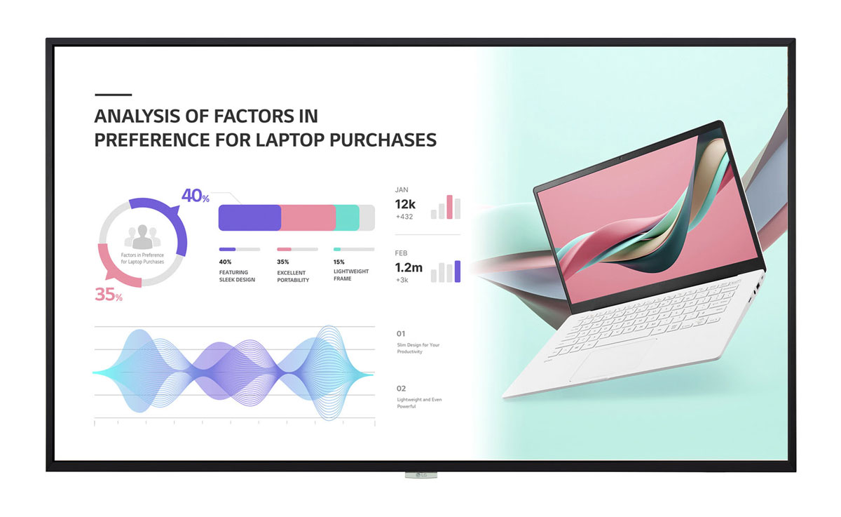 With a recommend brightness of 500 cd/m² for an indoor display, the UH5J-H series clearly deliver content and attract public attention, making it the most suitable display for marketing in meeting rooms, airports, retail, shopping malls etc.